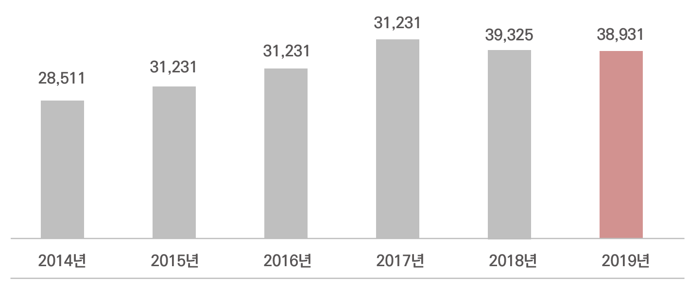 2014년 이후 시설투자비의 급증으로 전년대비 투자금액이 대폭 상승